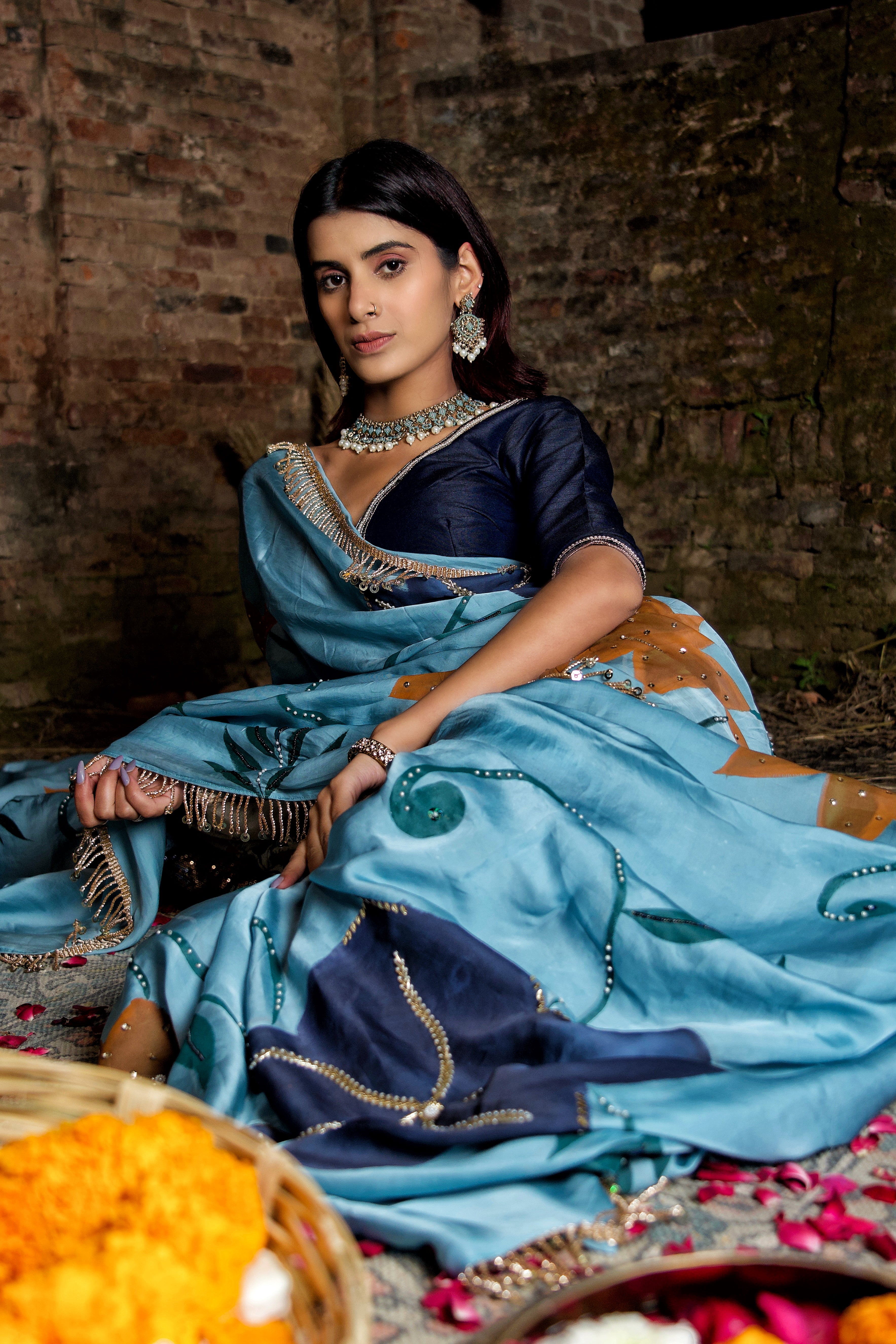 • As each saree is hand-embroidered, slight variations ensure your piece is truly one-of-a-kind