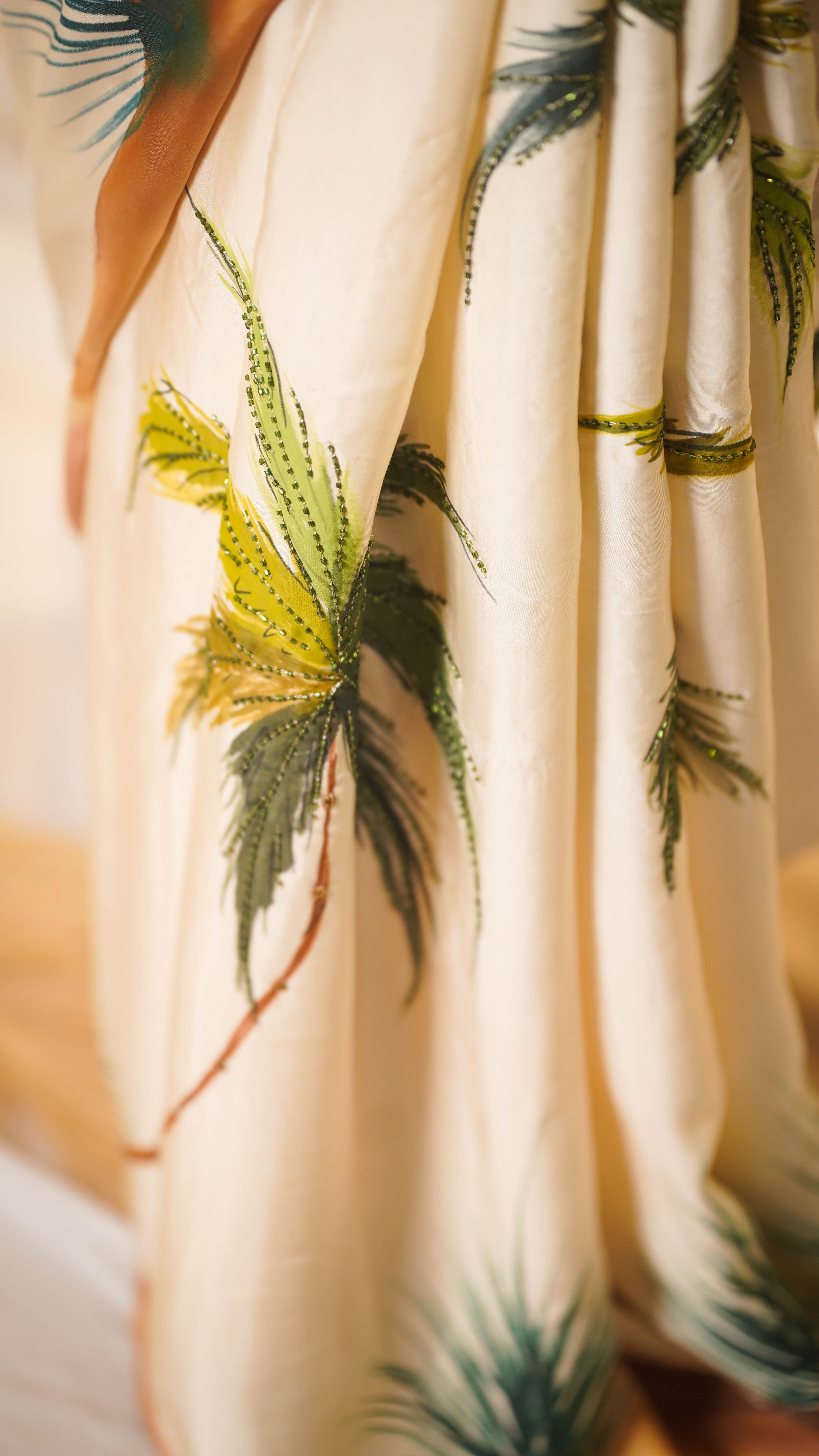 Wish for a different tropical element or a splash of color? Click here to customize your saree or reach out to us at 9068155122 to discuss your customization needs and create a saree that reflects your wanderlust spirit.