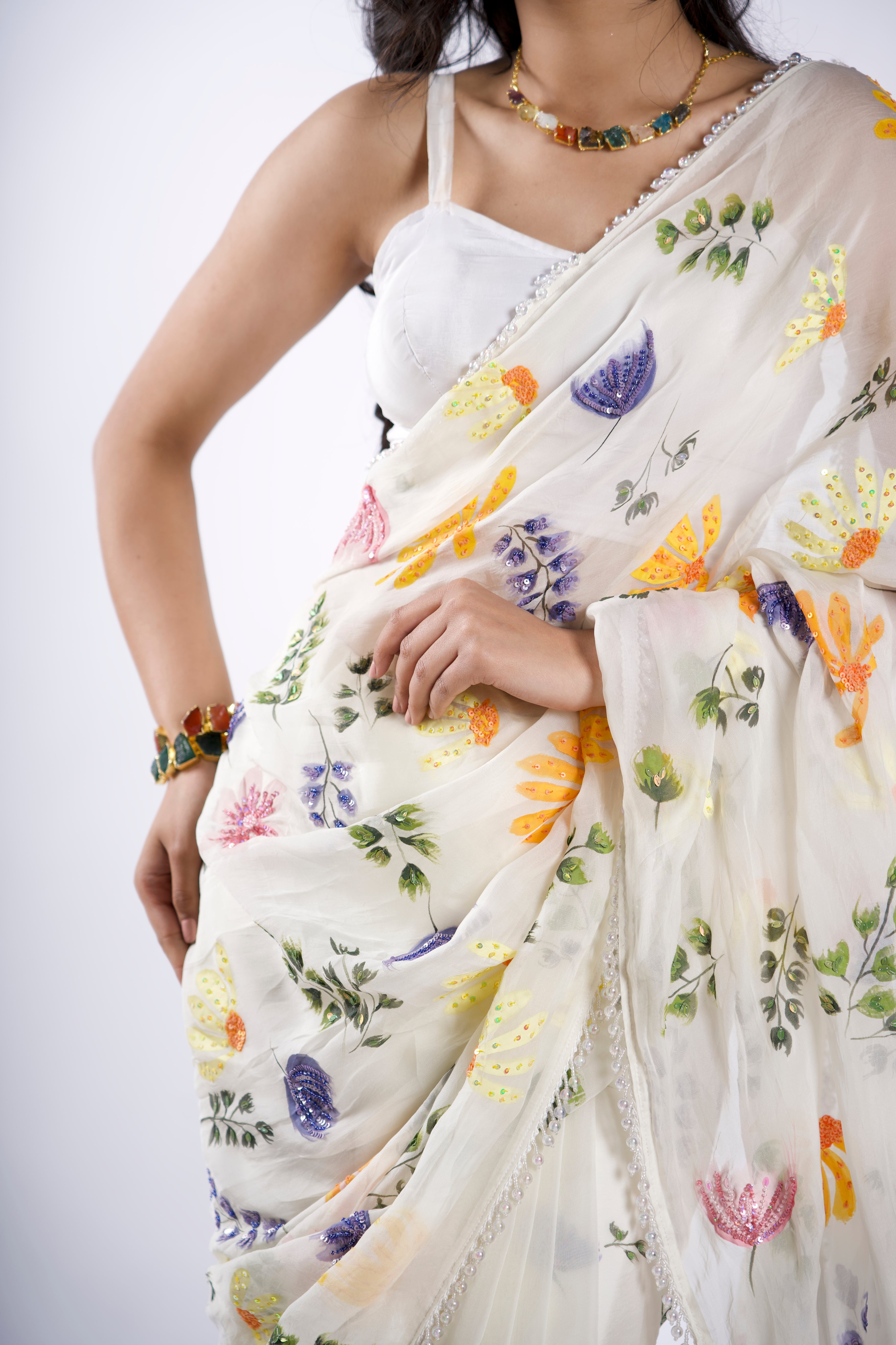 Please allow 25 business days for creation and shipping, as each saree is hand-painted to order.